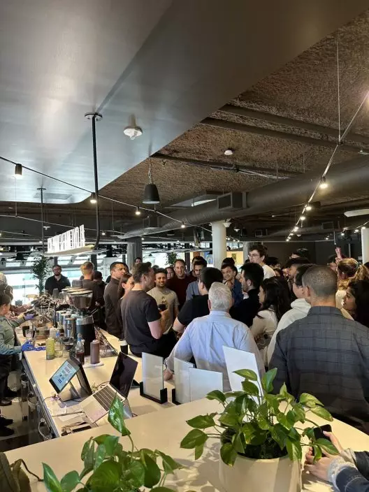馬斯克分享在Twitter三藩市總部一家咖啡檔內與其他人交談的照片。