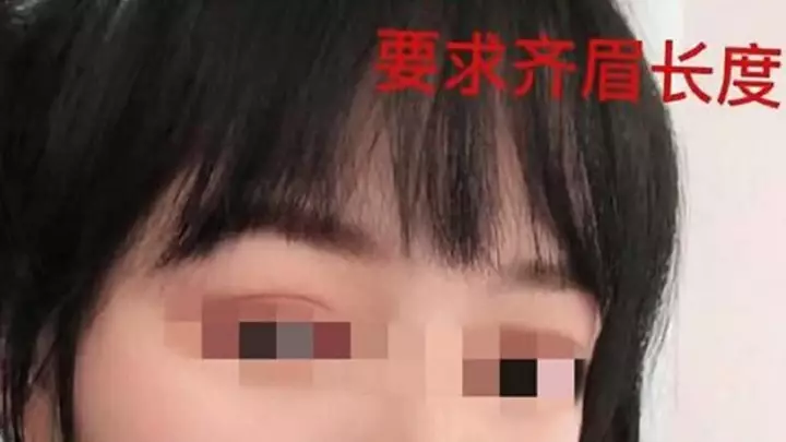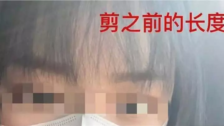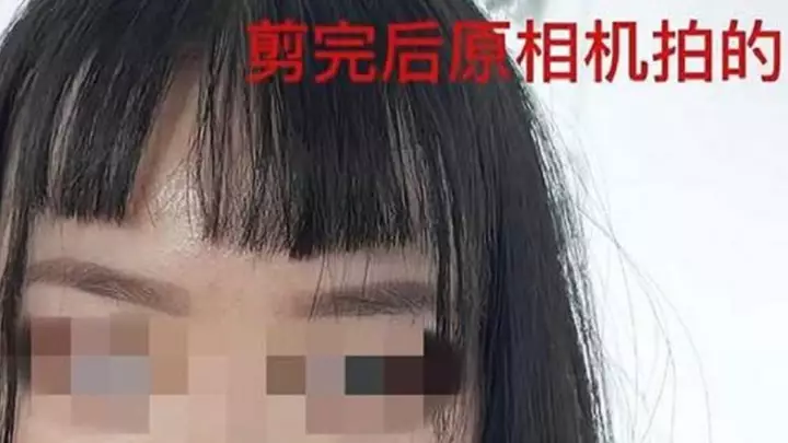 吳女理髮前瀏海長至遮蓋眼眉。網上圖片