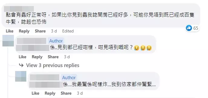 有網民指「點會有蟲好正常呀,如果比你見到蟲我諗間房已經好多」。網上截圖