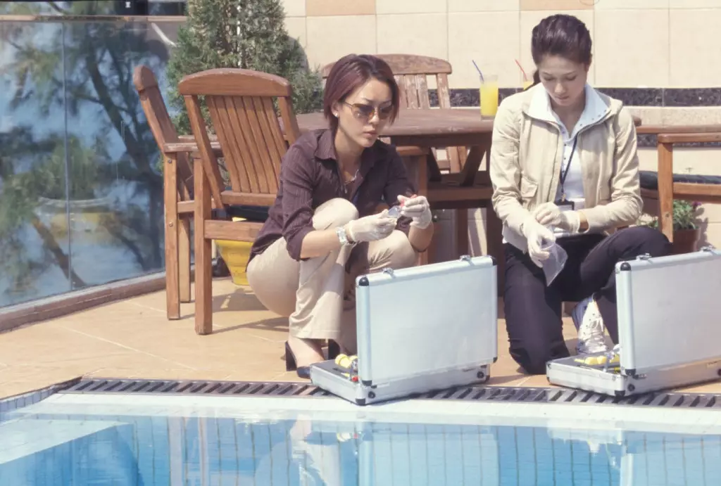 鍾嘉欣(右)在《法證先鋒》的第一及二輯,飾演法證部技術員林汀汀。