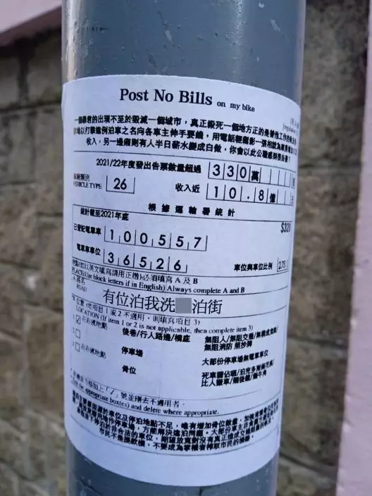 本港的違例泊車問題嚴重。近日有電單車司機自製一張「牛肉乾」反貼於燈柱上,就自己違泊收告票一事作出控訴,並列出3個原因,但大部分網民並不認同。