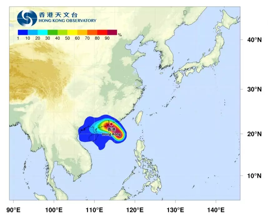 熱帶氣旋路徑概率預報。天文台