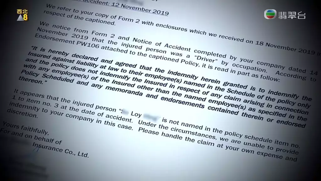 《東張西望》11月2日晚報道一宗懷疑呃工傷的事件,位於長沙灣蔬菜批發市場經營蔬菜批發逾20年的東主「英姐」,兩年前經招聘廣告僱用一名50多歲的司機,怎料對方返工的第二天疑因滑倒受傷,之後一直放有薪病假,英姐每月須支付定額賠償,最終賠了42萬元。而問題是英姐對觸發無了期賠償,曾獲勞工處來信事件已完結,但該名司機仍向英姐追討賠償及律師費,更意外揭出九巴曾有一位同名同姓人士,返工第4日意外受傷,懷疑有人借題發揮,利用舊患呃工傷賠償,事件拖延至今,仍未正式解決。