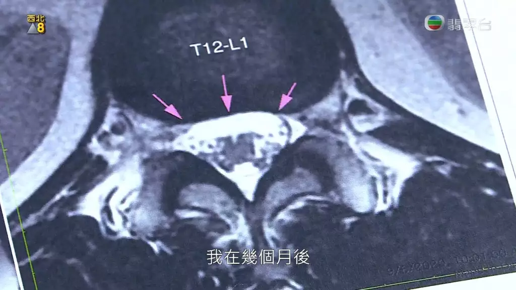 診斷結果顯示因為跣倒,導致脊骨受傷。