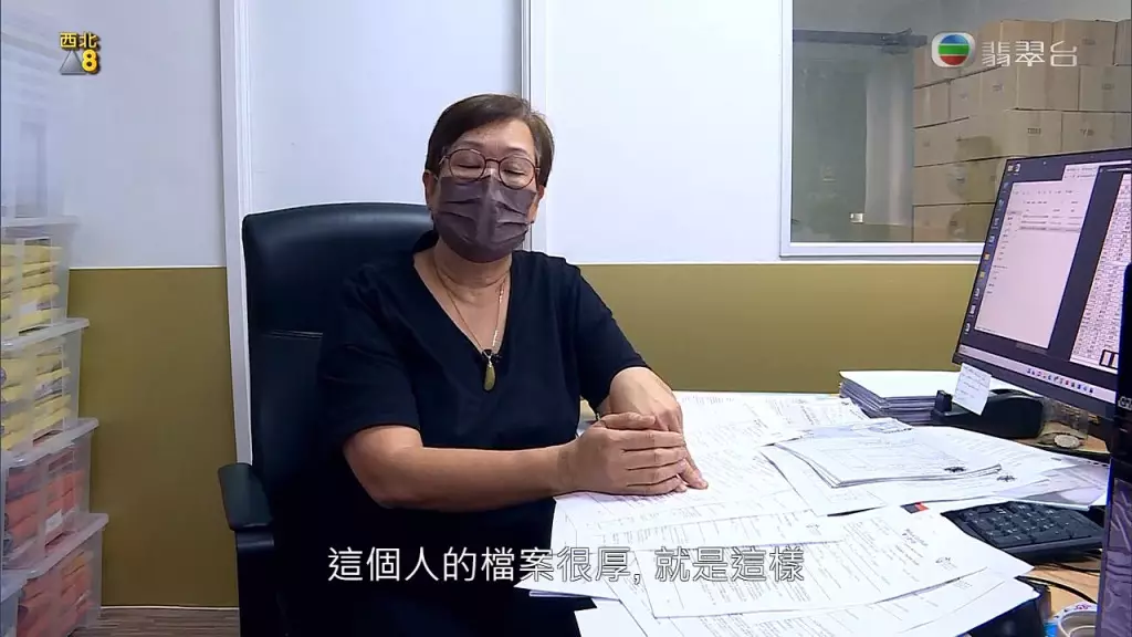 勞工處的職員向英姐表示該人的檔案好厚。