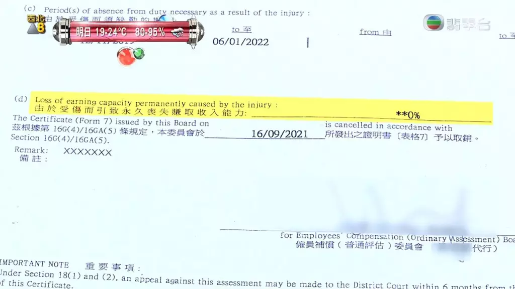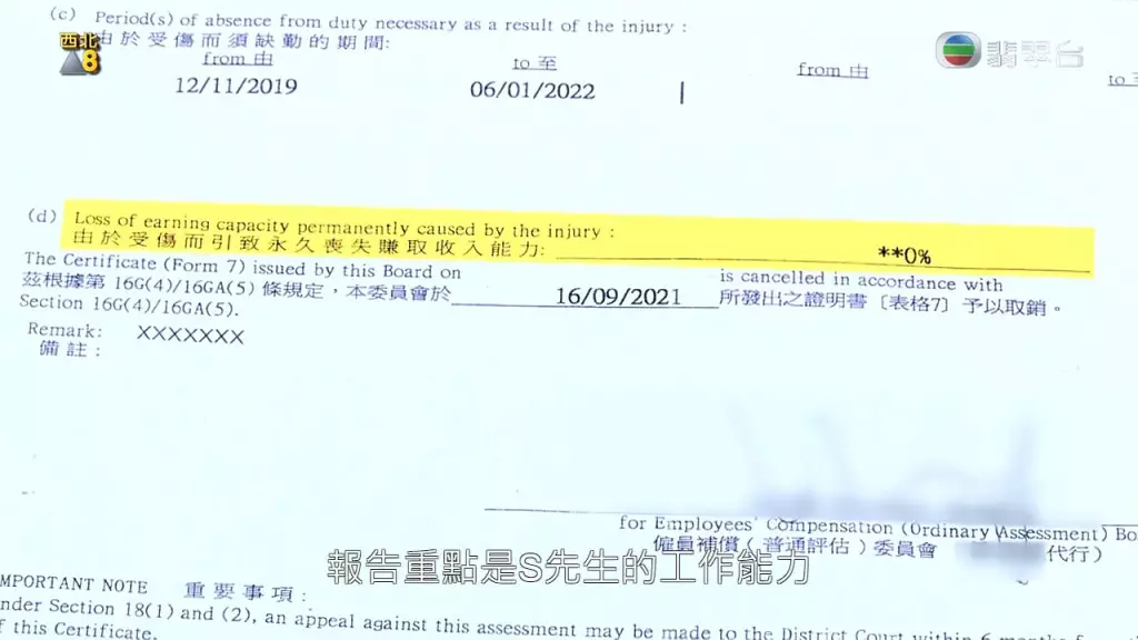 作出覆檢,評估司機因受傷而令工作能力受損為0%,即是沒受到影響。