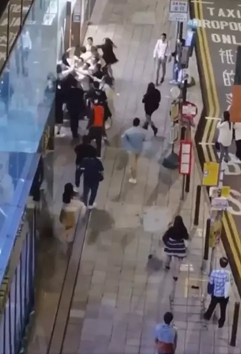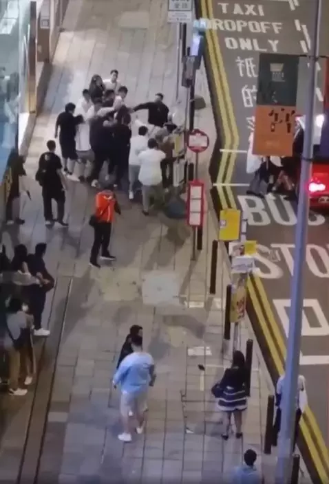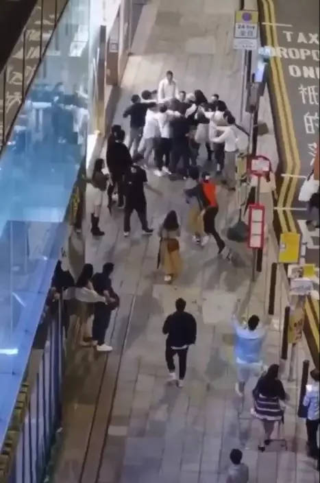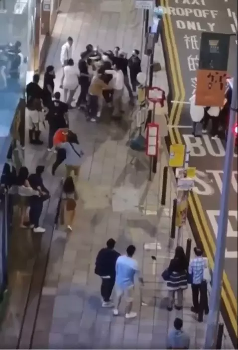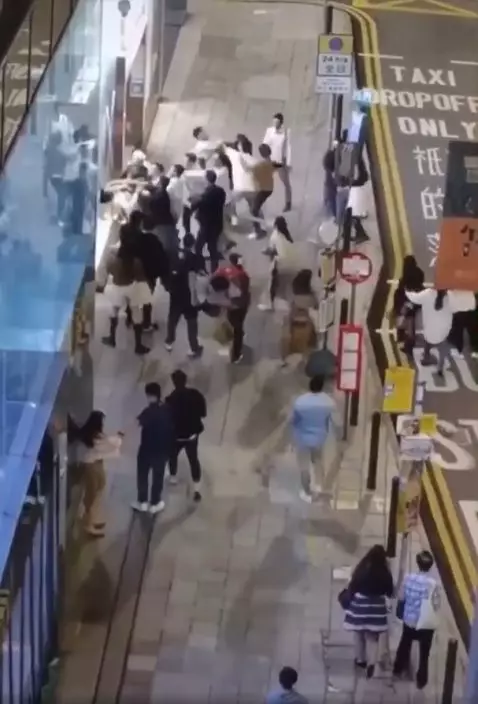 2日凌晨網上流傳一段影片,指在香港島拍攝到該段影片,影片中大部分人都是身穿白色襯衫及西裝褲,疑似婚宴後,兄弟和賓客鬧不滿。在短短的12秒影片中,可見將近20人參與其中,初時,1名白衣男子和1名白衣女子開始對罵,雙方人馬阻止及保護各自女伴,之後更開始互相推撞,期間白衣男子向白衣女子揮拳,導致女子身旁男伴對着揮拳男子不斷追打,可見約有7至8人將揮拳男子壓在身後的玻璃牆上,其中1名黑衣男子更不斷揮拳撃打白衣男子的面部。在雙方開始圍毆後,不斷有同行人上前勸交。