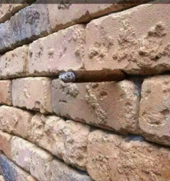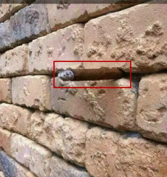 照片似乎是普通磚牆,有網民留意到中間有灰色物體,但由於圖片質素一般,無法看清是甚麼,亦有人猜測是一塊石頭卡磚塊罅隙。