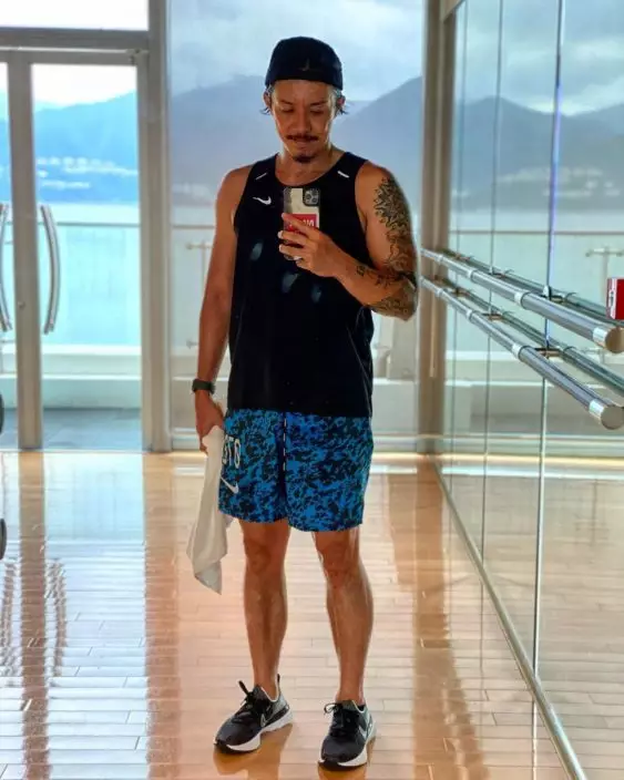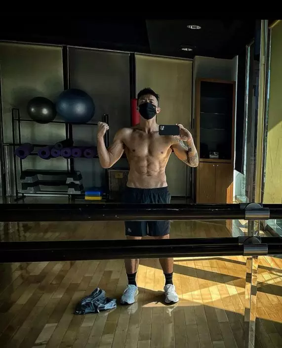 他每日健身約兩小時,內容包括1小時帶氧運動,一小時重力訓練,晚上再做15分鐘簡單練習如掌上壓。