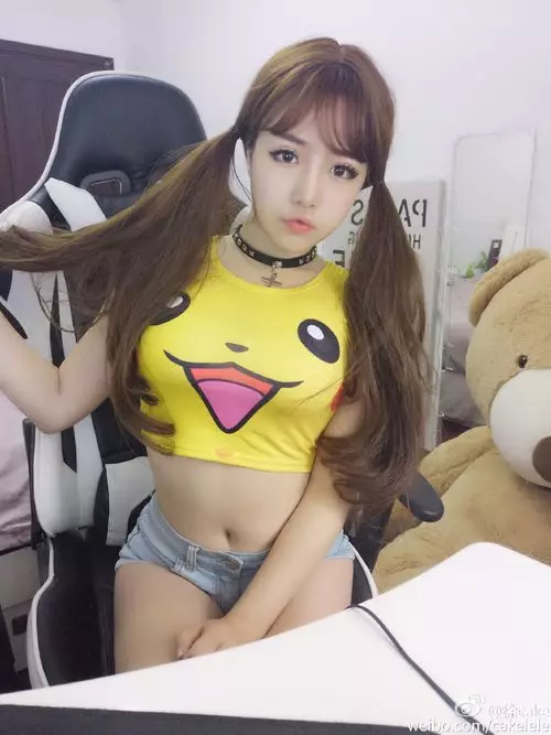 當中一張皮卡丘(舊名比卡超)的三點式照片令不少網民拜倒她的童顏巨乳之下。