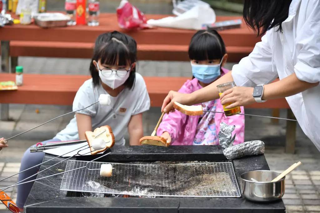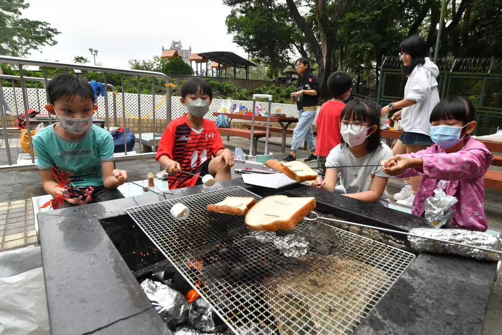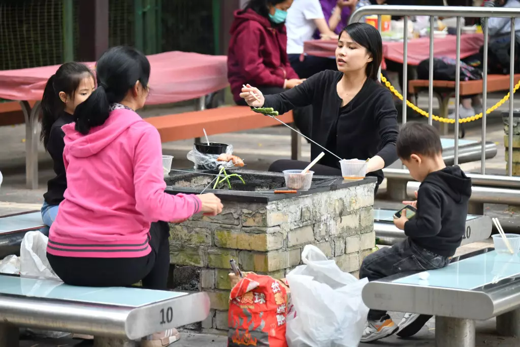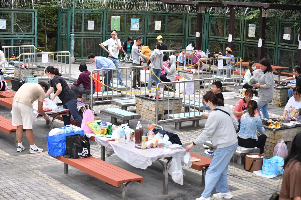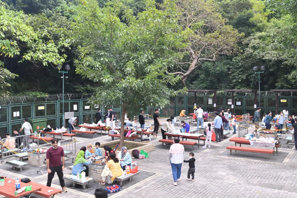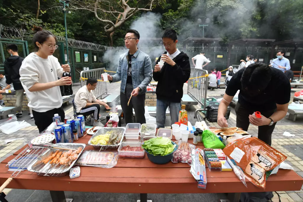 在獅子山郊野公園,現場燒烤爐於中午時間已被霸滿,而下午約5時左右,仍有市民攜帶一袋袋燒烤食品及飲品到場等候有空出的燒烤爐。有家長帶同小朋友前來燒烤,並指以前帶各自小朋友來時仍在讀同一間幼稚園,現時都已升上不同小學。有職員表示,因目前仍有12人限聚令,整個場會「梅花間觸」地封爐,保持社交距離。