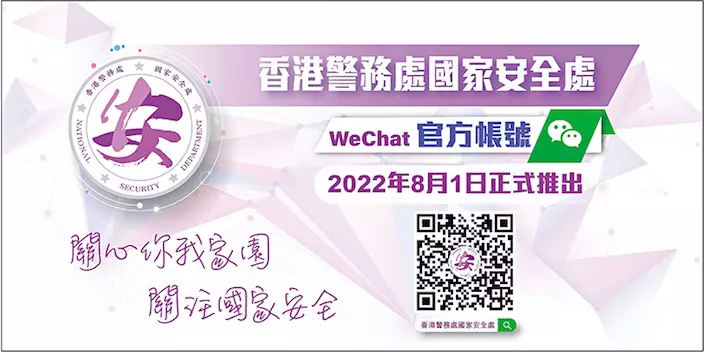 在維護國家安全的路上,每位市民都擔任重要角色。為便利市民提供與危害國家安全相關訊息及接收國家安全相關資訊,國安處今年8月1日還正式推出了「香港警務處國家安全處」微信官方帳號。