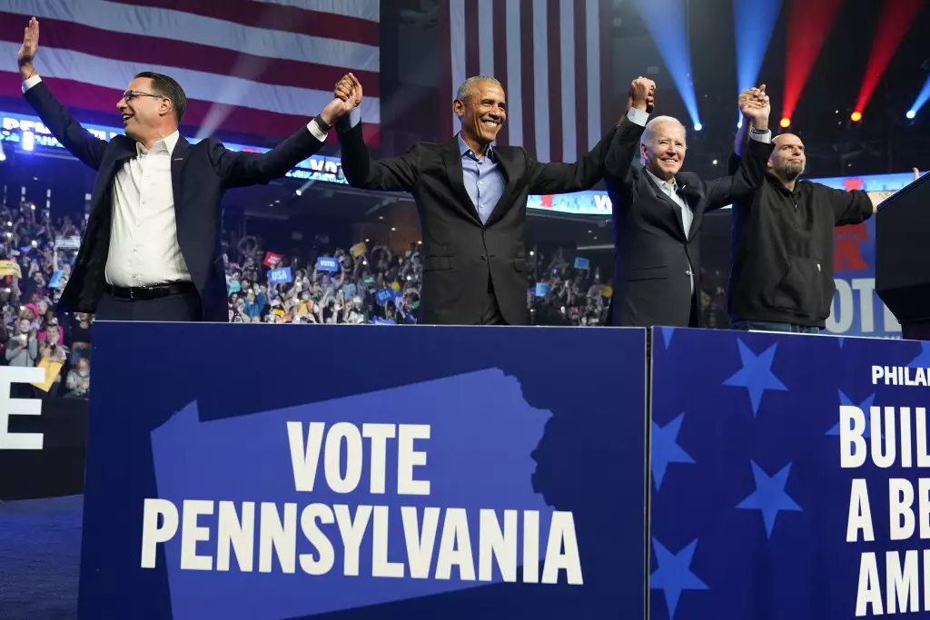 這是同屬民主黨籍的拜登和奧巴馬在這次選舉中首度合體,力拚也在賓州助選的共和黨前任總統特朗普。拜登強調,選民面臨截然不同的美國願景選擇,若民主黨敗選,國家將面對「數十年」的後果。特朗普則呼籲選民投共和黨候選人,以制止國家遭到破壞,從而挽救美國夢。