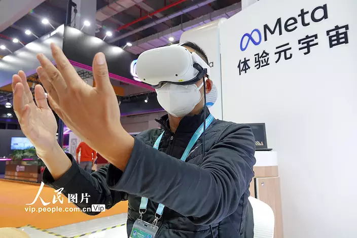 觀眾在第五屆進博會Meta展位通過VR設備體驗元宇宙。圖源:人民日報