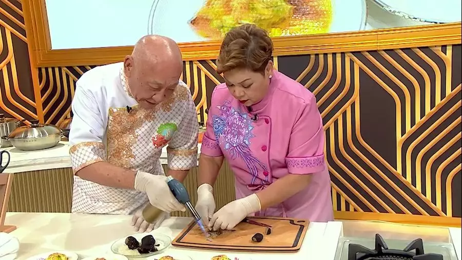 而出名轉數快的志偉則不停大放笑彈,話說志偉帶了每公斤價值五位數美金、白化鱘魚所產的「黃金魚子醬」和大家開心Share,Jacques見狀即說:「呢個喺香港百分百係限量,我一生人都好少見,係皇帝級嘅食物!」盛裝出席的家燕姐也大表驚嘆:「好啱我呢個『登基燕』食,哈哈。」又大讚黃金盛宴菜式擺設精緻,甚有「登基宴」Feel,志偉聞言即搞笑問恤了一頭靚髮的家燕姐回家後可會洗頭,不過見慣大場面的家燕姐絲毫未有被拋窒,只強調自己若早上7點開工,通常於凌晨5點便起身Set頭。
