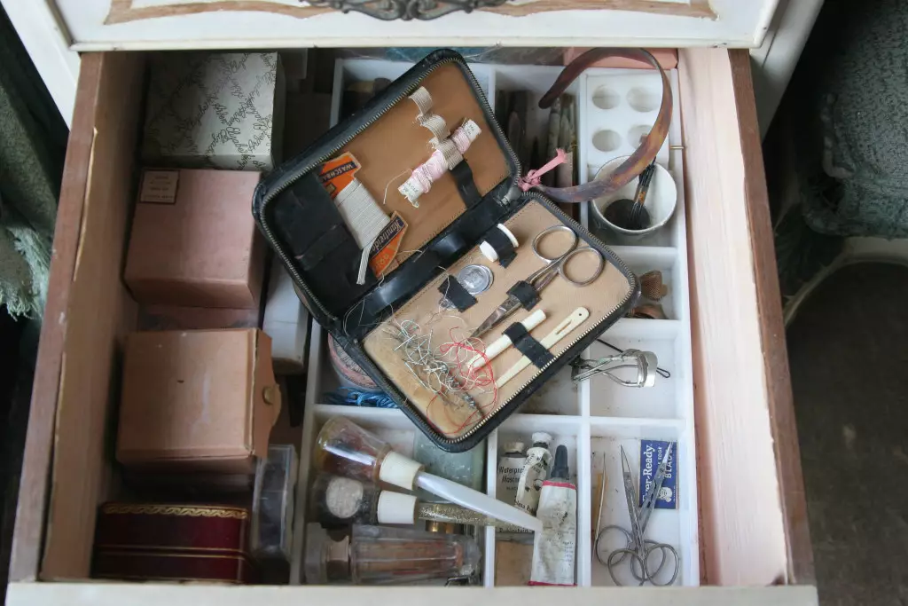 林黛生前和夫婿的睡房,睡房內的陳設、傢俬亦維持近半世紀前的原狀,入牆衣櫃內擺滿一系列林黛生前的衣服、手袋及皮鞋,每一件依舊是新簇簇的。另在梳妝台抽屜內發現林黛生前用過的化妝品,打開一看,粉盒一點也沒有乾涸,就連林黛一直保存的出入境紀錄及其他私人文件,皆原封不動擺放在房中。