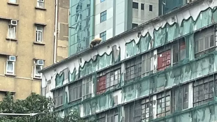 西營盤德輔道西280號西區舊已婚警察宿舍,14日早上8時21分,住對面樓的居民發現,警察宿舍7層高的天台有一隻1.5米長野豬徘徊,並經常行近在天台邊,狀甚危險,驚險萬分,於是報警求助。