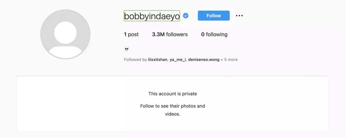 Bobby自上年未婚產子風波後,個人社交平台一直是私人狀態(網上截圖)