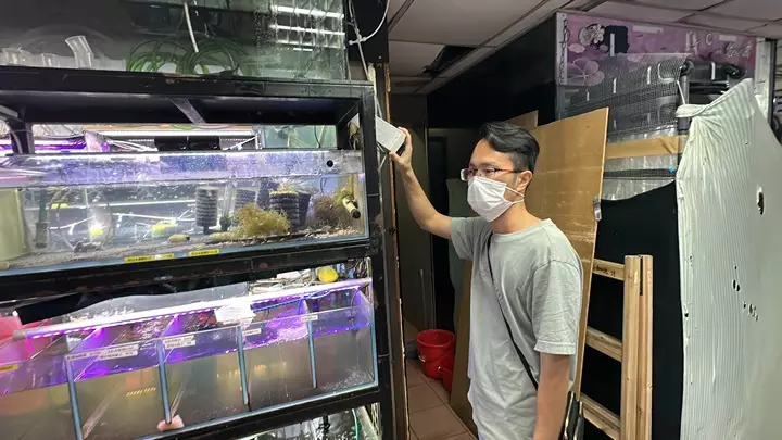 現場在青山公路269號力生廣場1F一間水族舖,16日上午11時許,店主黎先生回來開舖,驚見店舖圍板損毀,有液體於頂層魚缸一直向下流,12缸金魚大量死亡,其中一缸逾一千隻水晶虾喪命,約值過萬元,連同其餘11缸金魚合共損失逾兩萬元。