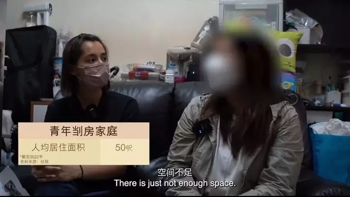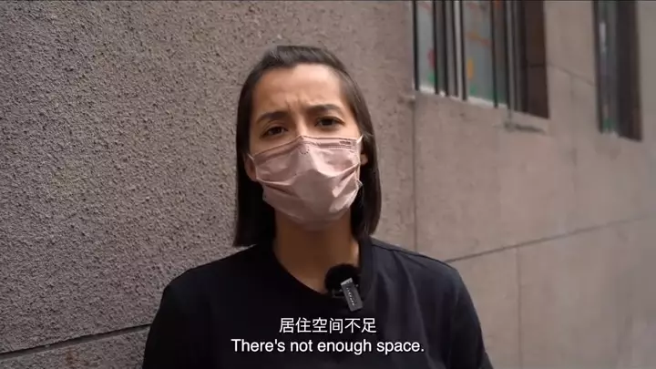 謝嘉怡在影片開始,已簡述香港土地問題,租金昂貴、居住空間不足、公屋輪候時間過長令基層苦不堪言。