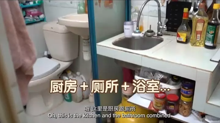 謝嘉怡見到廁房與廁所相連,加上昂貴租金,感到相當震撼。