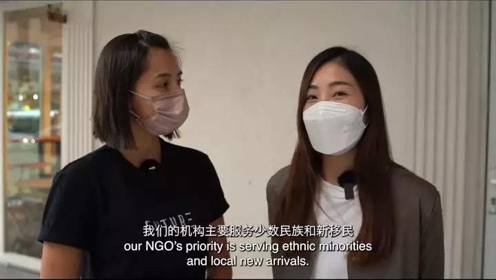 謝嘉怡同時採訪NGO社工,介紹食物銀行。