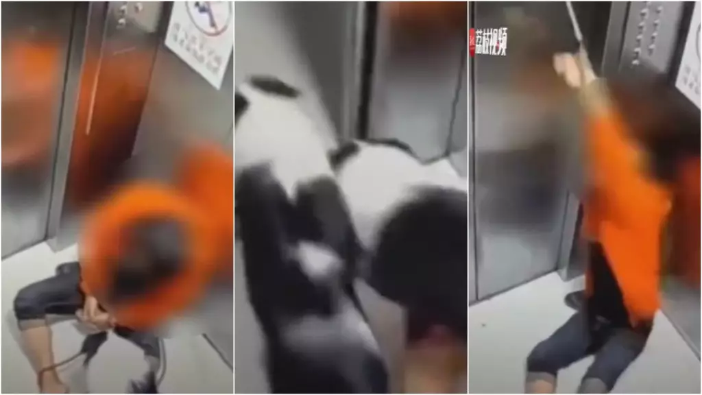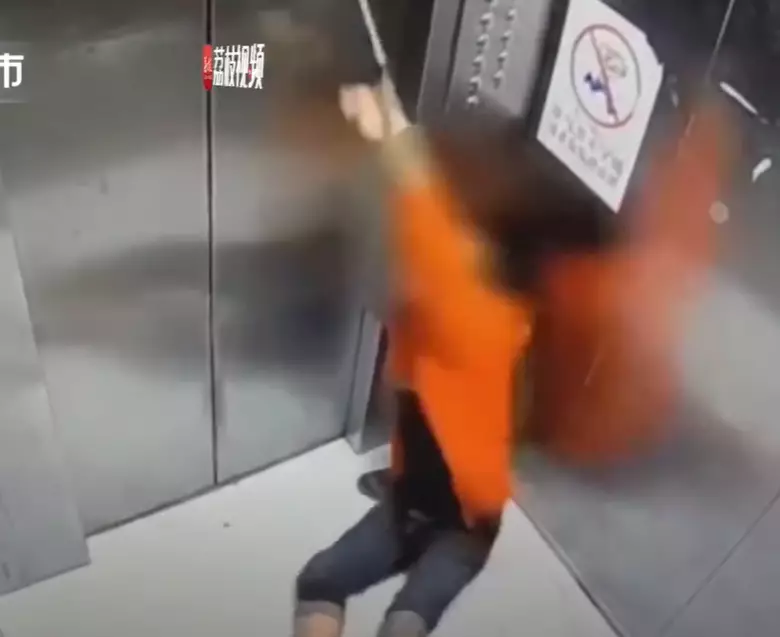 升降機內的男子整個人被狗繩拉高吊起而驚醒。網片截圖