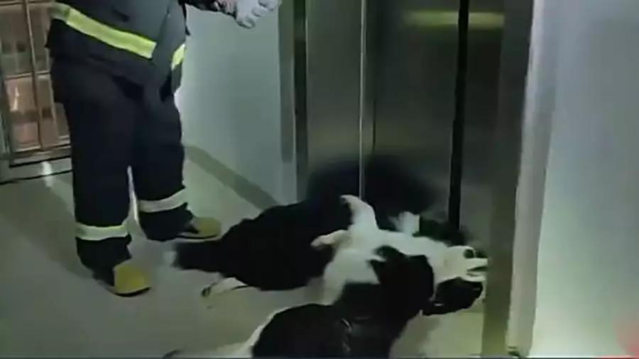 參與救援的消防隊長表示,「升降機到了下一層後,繩子被拉起,遛狗主人手吊起來了,兩隻狗被卡在7樓升降機門外,那狗主人卡在6樓。」