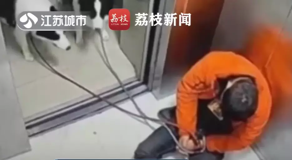 江蘇男酒後遛狗搭𨋢睡著釀意外,一狗慘遭勒斃。 網片截圖