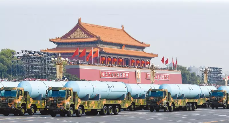 「巨浪-2」導彈放在貨車上作閱兵展示。