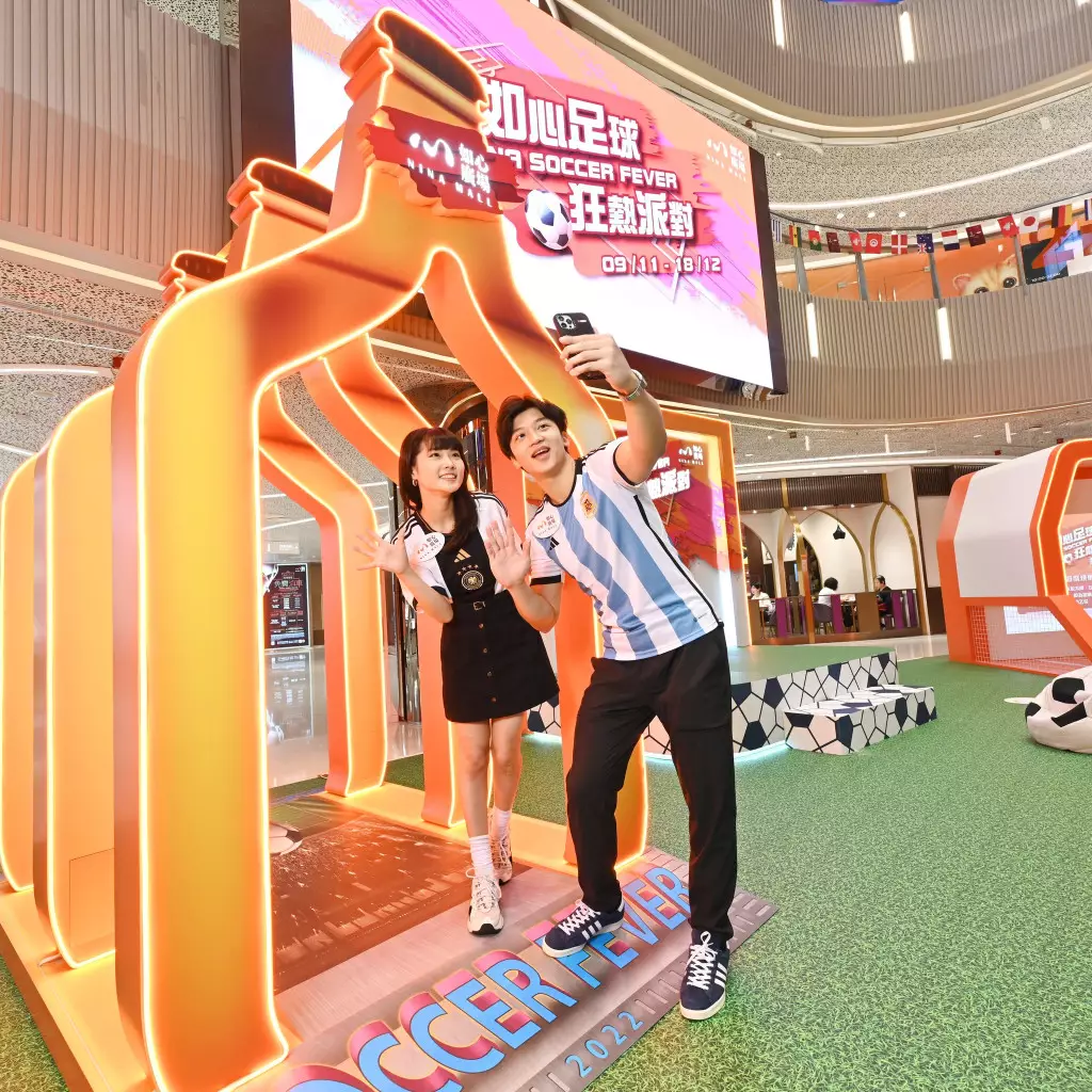 商場一期中庭設230吋大電視,場內舉行超大型睇波派對,設有狂熱互動遊戲、巨型3D立體錯視藝術打卡位和零食街等。