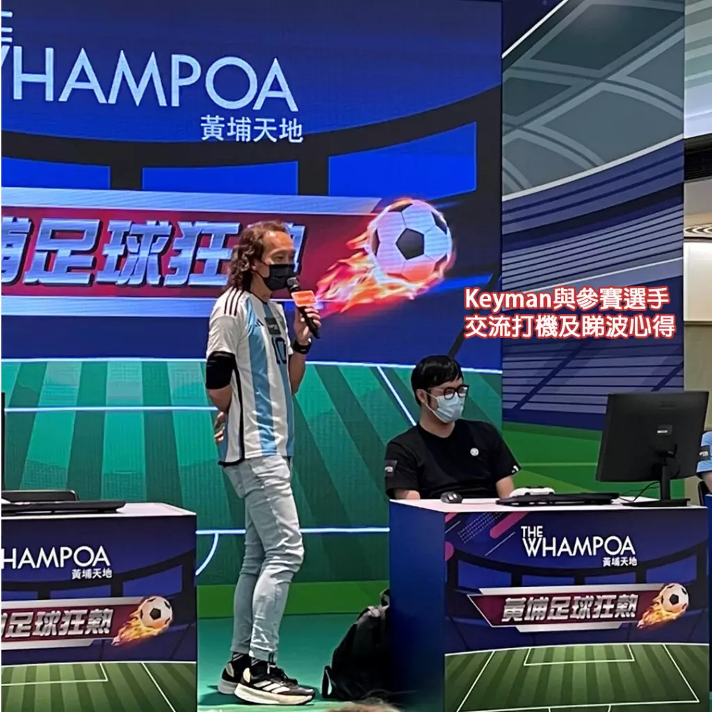 Keyman(馬啟仁)在黃埔天地「FIFA Online 4 電競嘉年華」與參賽選手交流打機和睇波心得。網圖