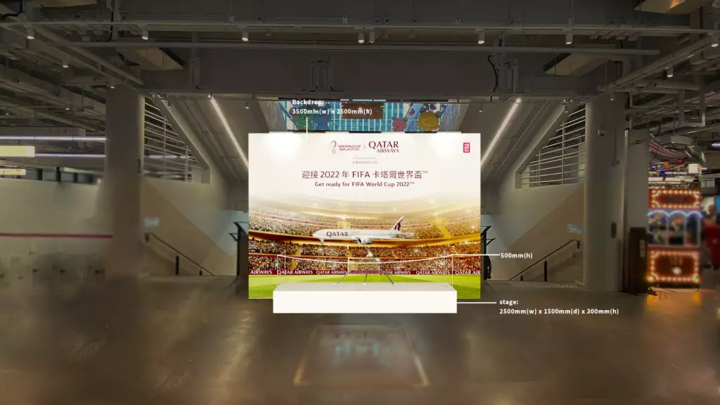 地下露天廣場OASIS設觀戰專區,裝有5米高戶外大電視直播賽事,其他樓層亦設LED高清大電視作直播。卡塔爾國駐華大使館另展出8件世界盃比賽場館模型,卡塔爾航空展則出1:50波音777飛機模型。場內商戶則提供限定美食優惠,指定信用卡可享高達18%回贈。
