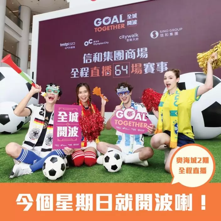 信和集團商場旗下包括奧海城、屯門市廣場、荃新天地均會全程直播64場賽事。網圖