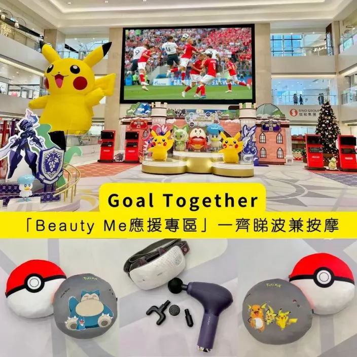 場內擁有全港商場最大的540吋4K大電視,並有Pokémon打卡位,7米高巨型比卡超恭候倍伴睇波。指定場次另特設「Beauty Me應援專區」吸引女球迷,場內不但可享用OSIM肩、頸、腰按摩產品,還可一邊觀賞賽事,一邊享受美甲及享用睇波急救護膚品。