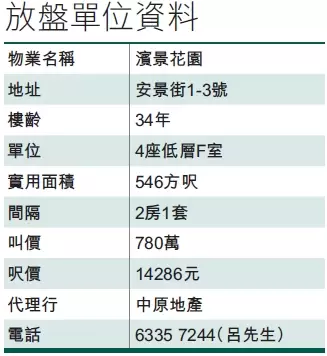 沙田濱景花園,前臨城門河,加上步行數分鐘可到港鐵石門站,吸引不少買家入市。是次精選該屋苑4座低層F室,實用面積546方呎, 採2房1套設計,家具齊全,外望石門市景,可遠眺山景,現以780萬放售,實用呎價約14286元。 《星島頭條》APP經已推出最新版本,請立即更新,瀏覽更精彩內容:https://bit.ly/3yLrgYZ