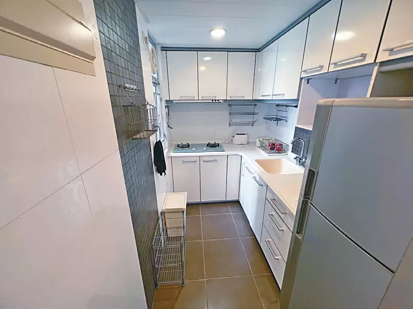 全屋通鋪淺色地磚,令空間在視覺上更顯寬敞。
