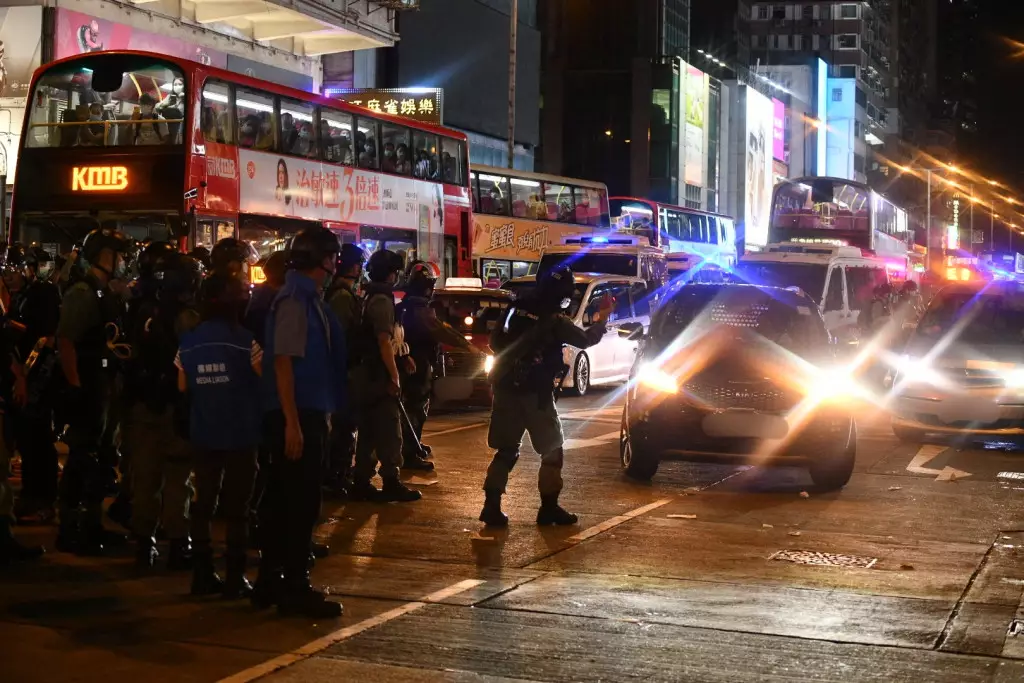 當晚朗豪坊外有人堵路,警方到場制止。資料圖片