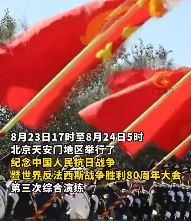 北京天安門舉行紀念中國人民抗日戰爭暨世界反法西斯戰爭勝利80周年大會第三次綜合演練。