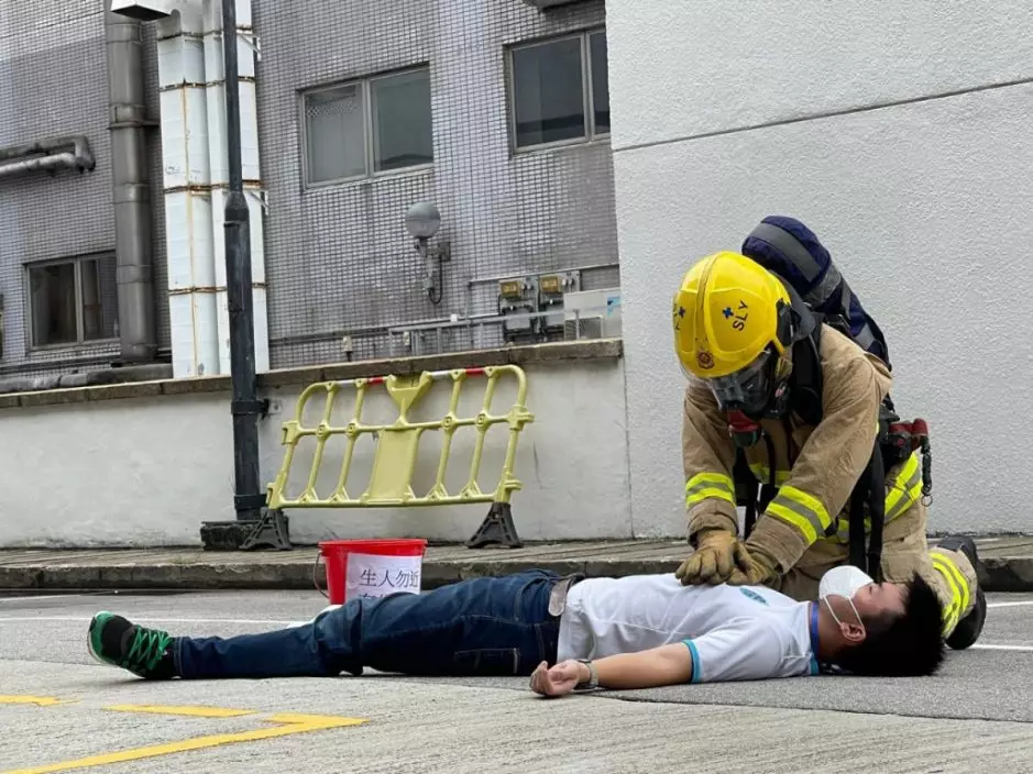 消防處於現場使用無人機配備監測系統,把現場危害物質監控資料及行動情況以影像方式實時於威爾斯親王醫院「重大事故控制中心」展示,又派遣危害物質專隊到場處理有關化學品及設立充氣帳篷為傷者進行洗消程序。是次演練能有效提升各單位在突發事故中的指揮、控制、跨部門協作及應變能力。