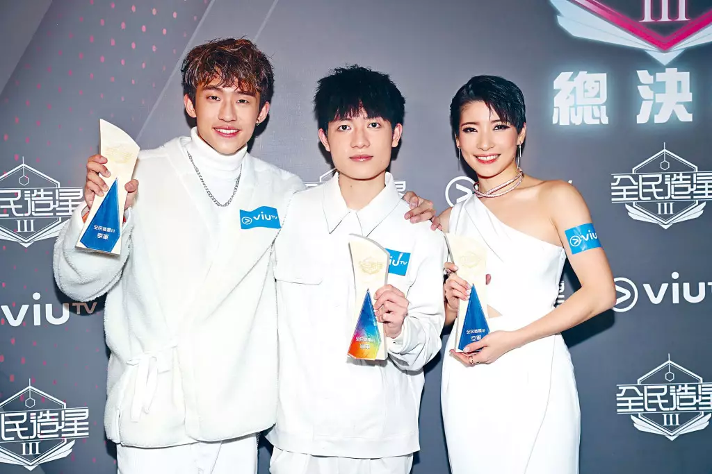 《全民造星III》冠軍「折骨舞王」趙祥誠(Ben)(中),亞軍陳葦璇(右)、季軍陳毅燊(Ansonbean)(左),3人在歌壇嶄露頭角。