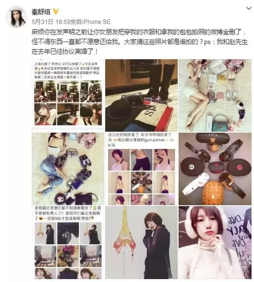 秦舒培亦不甘被前夫指責出軌,前晚在微博公開一名女子「lisa大額頭」多張微博自拍照,指對方在網上晒出不少名牌時裝和手袋,其中包括一條繡上「SP」字母的名牌頸巾,疑為拼音「舒培」所有,秦舒培留言叫趙磊發聲明之前讓女朋友把穿她的衣服拍照的微博全刪掉,又指對方怪不得一直不願還東西給她,暗示前夫亦早已另有新歡。此外,有網友心水清搜出「lisa大額頭」曾在關於秦舒培的微博留言。