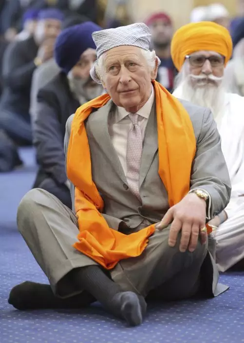 英皇查理斯三世在一所錫克教廟,並與社區領袖見面。AP