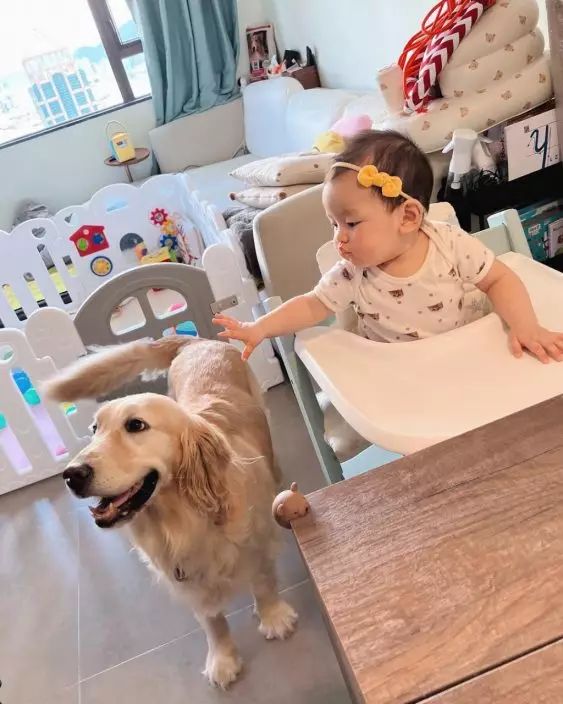 洪永城與梁諾妍在結婚前已養有狗狗Molly,誕下囡囡後,Molly也盡姐姐本份,幫手照顧洪寶成長。