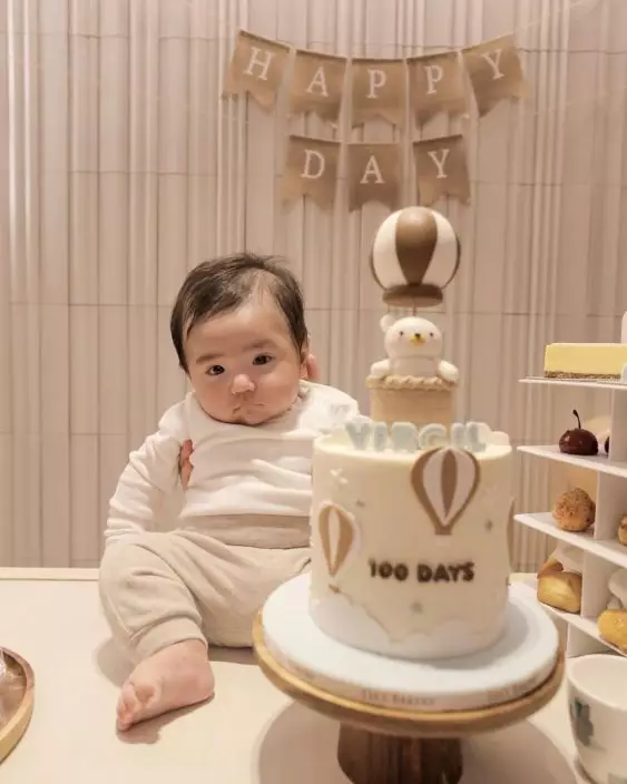 囝囝百日宴時,已經被網民大讚靚仔,未來一定是「高富帥」。