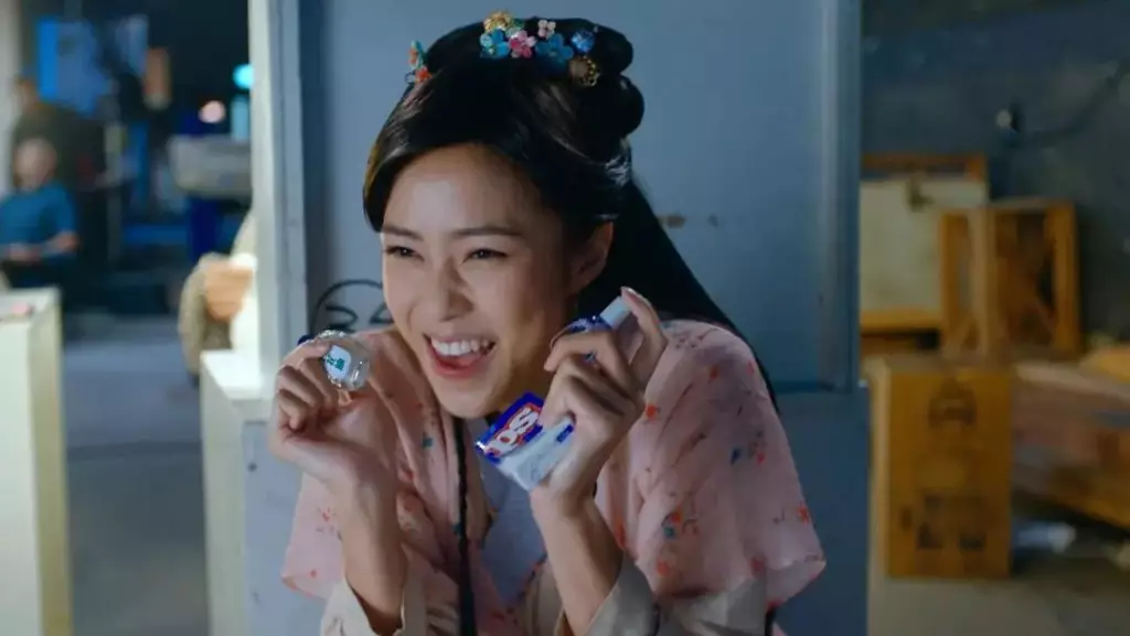 何沛珈曾在《愛回家之開心速遞》中化身潘金蓮大晒長腿。