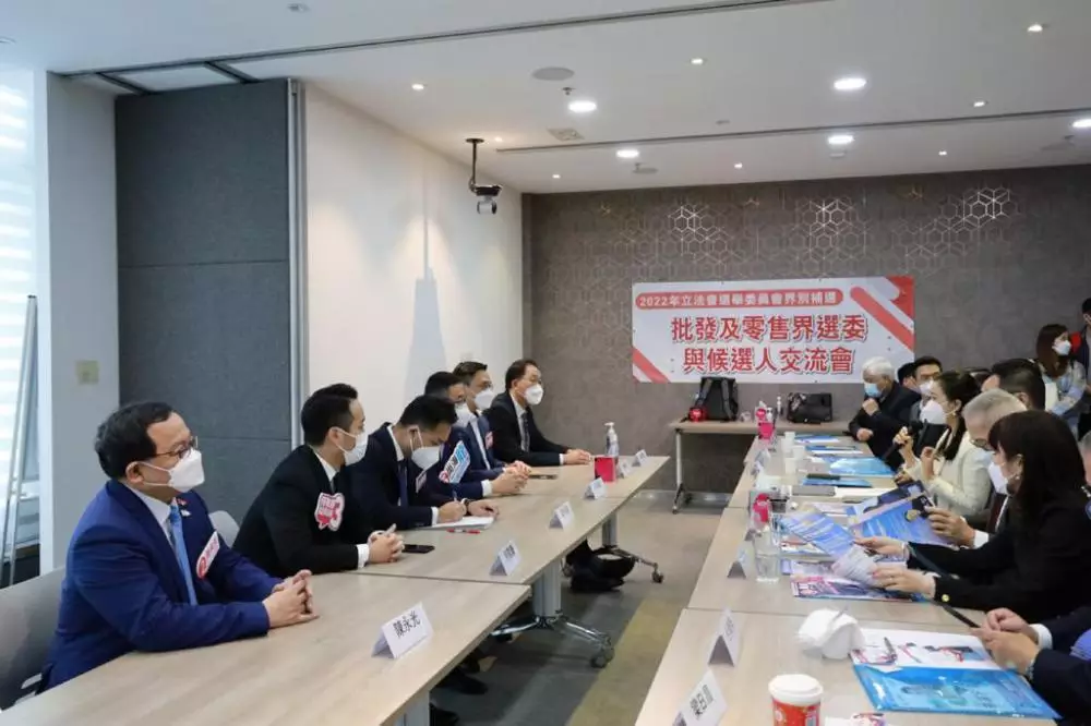 2022年立法會選舉委員會界別補選將於12月18日舉行,爲了讓一眾批發及零售界選委更了解各候選人的背景及政綱,同時讓候選人理解批發零售業界最主要關注的議題,立法會議員邵家輝牽頭與業界於12月7日中午在銅鑼灣特別舉辦一場批發及零售界選委與候選人交流會,出席包括6位候選人黃錦輝、陳永光、何敬康、黃梓謙、尚海龍、李廣宇,及約20名批發及零售界選委。