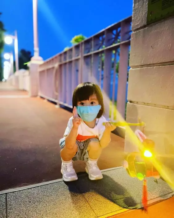 大部份照片囡囡「小珍珠」都戴上口罩拍攝。