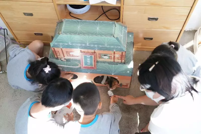 就這樣小貓不僅繼續留在園中,更獲得了「新職務」,搬進了它氣派的新居,擁有了一個新名字「小彩」(與彩田幼兒園相照應)。