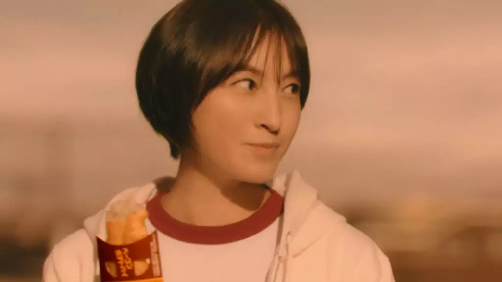 廣末涼子於37歲時再以「女高校生」打扮拍廣告。